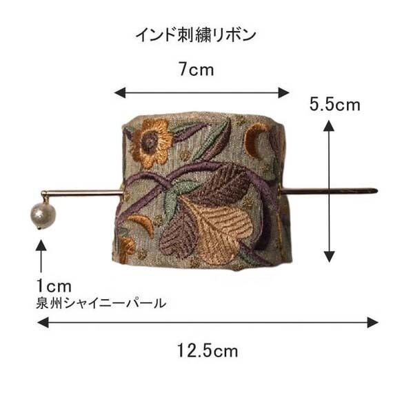 高級感のあるインド刺繍リボンを使い、生地がよれないように内側に芯を重ね綺麗なカーブが出るように仕上げてあります。まとめ髪のポイントに華やかさをグッと際立てます。
