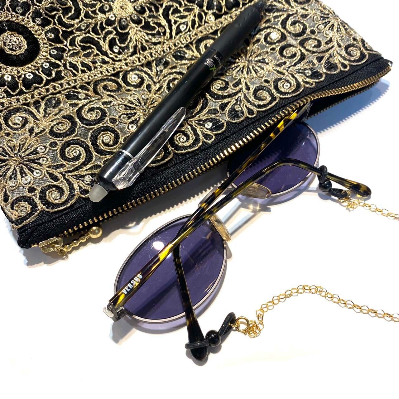 ラクジュアリーなデザインのインド刺繍リボンを使用した化粧ポーチ