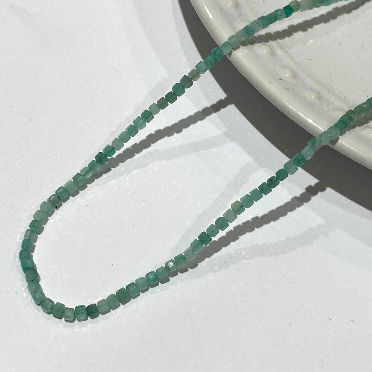 【14K GOLD FILLED】NB175 天然石 エメラルド 2X2mm キューブネックレス40cm 14KGF