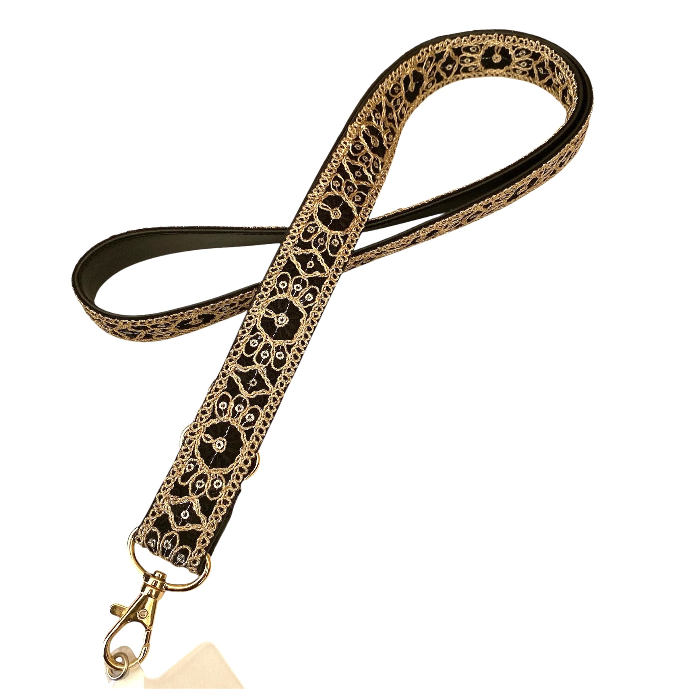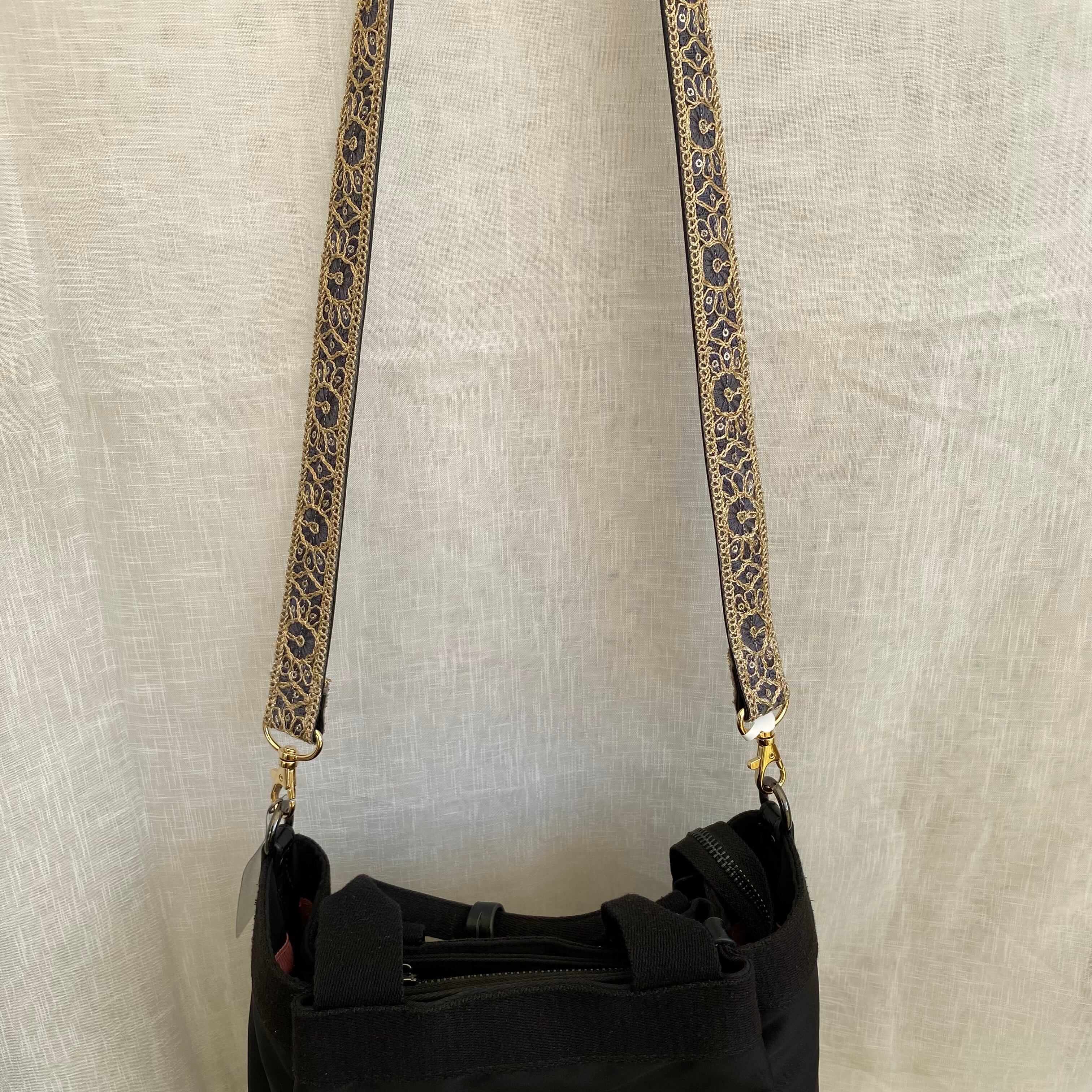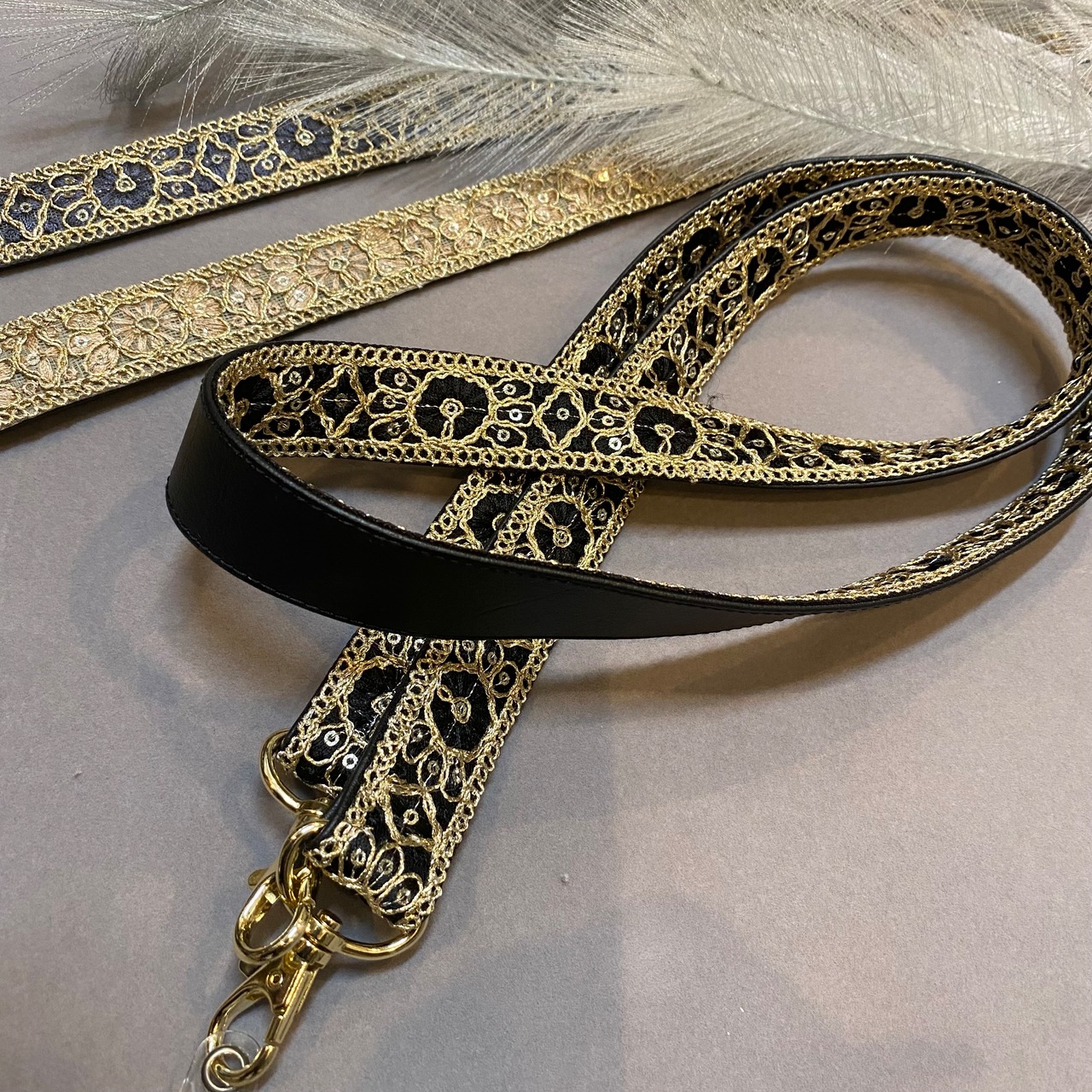 ストラップホルダー付き インド刺繍リボンショルダーストラップ 裏地合皮レザー 金糸チュール